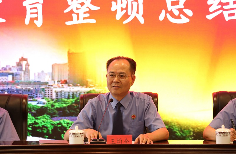 王均全指出,自政法队伍教育整顿开展以来,我院深入贯彻落实中央、省、市、区委和上级院的要求部署,聚焦“四项任务”,紧扣“三个环节”,发扬“延安整风”精神,加压推进、务求实效,顺利完成了各项工作任务。既主动探索规律、积极实践,积累了一些经验做法,收获了深刻启示,又在查纠整改过程中发现问题、找到短板,找到了制约发展的问题瓶颈,明确了创新发展的方向路径。