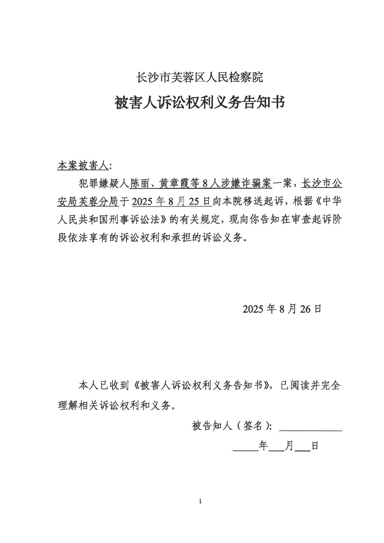 陈丽、黄章霞等8人诈骗案委托诉讼代理人/申请法律援助告知书、被害人诉讼权利义务告知书