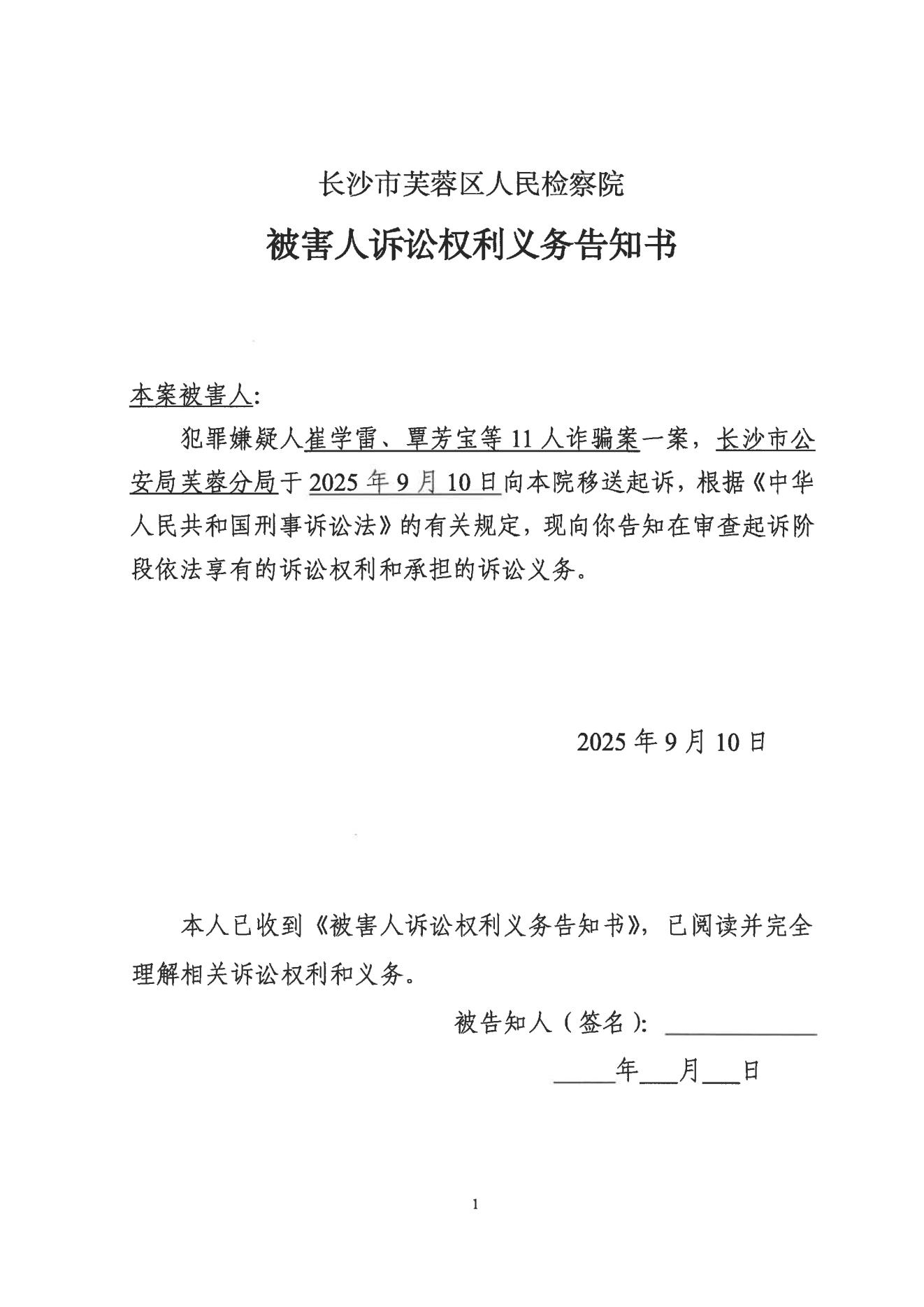 崔学雷、覃芳宝等11人诈骗案委托诉讼代理人/申请法律援助告知书、被害人诉讼权利义务告知书
